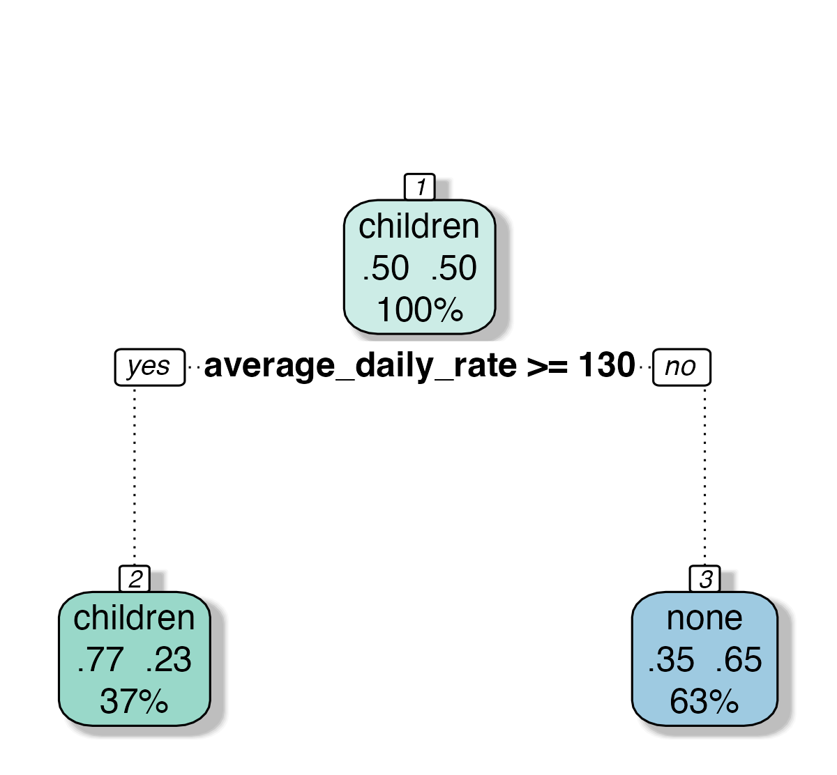 2 children [.77 .23] when average_daily_rate >= 130 37%